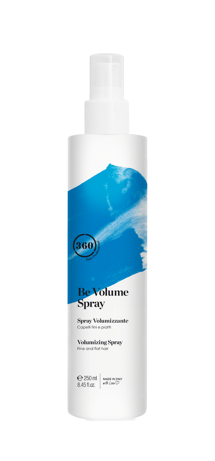 The 360 Be Volume Volumizing Spray is the ultimate styling solution for those seeking long-lasting fullness and a natural-looking bounce. Infused with a specialized Volume-Boost complex, this spray works by coating each individual hair fiber to increase diameter and structural rigidity, creating the appearance of thicker, denser hair. Unlike traditional volumizers that can leave a sticky or "crunchy" residue, the Be Volume formula maintains the hair's natural softness and flexibility, allowing for fluid movement and a touchable finish. This professional spray also provides humidity protection, ensuring that your lift stays intact throughout the day regardless of environmental conditions. Its lightweight mist distribution ensures even application, making it easy to target the root area for maximum vertical lift or apply through the lengths for airy texture. Perfect for use before blow-drying, it acts as a thermal shield while providing the grip necessary for voluminous styling. Experience high-impact body and professional-grade results with every spray. Made in Italy with premium ingredients for the modern stylist.
