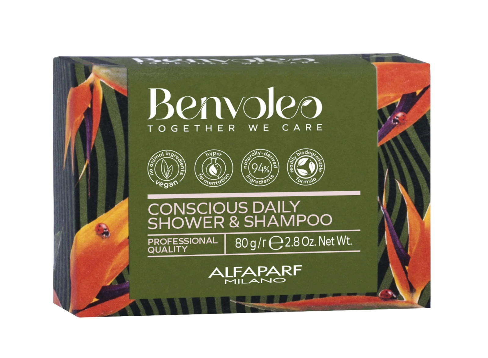 Alfaparf Milano Benvoleo Conscious Daily Shower & Shampoo Bar is a professional-grade, solid cleanser designed for the ultimate "clean beauty" routine. This 80g solid bar provides a high-performance, dual-action solution for both hair and body, significantly reducing plastic waste without compromising on results.