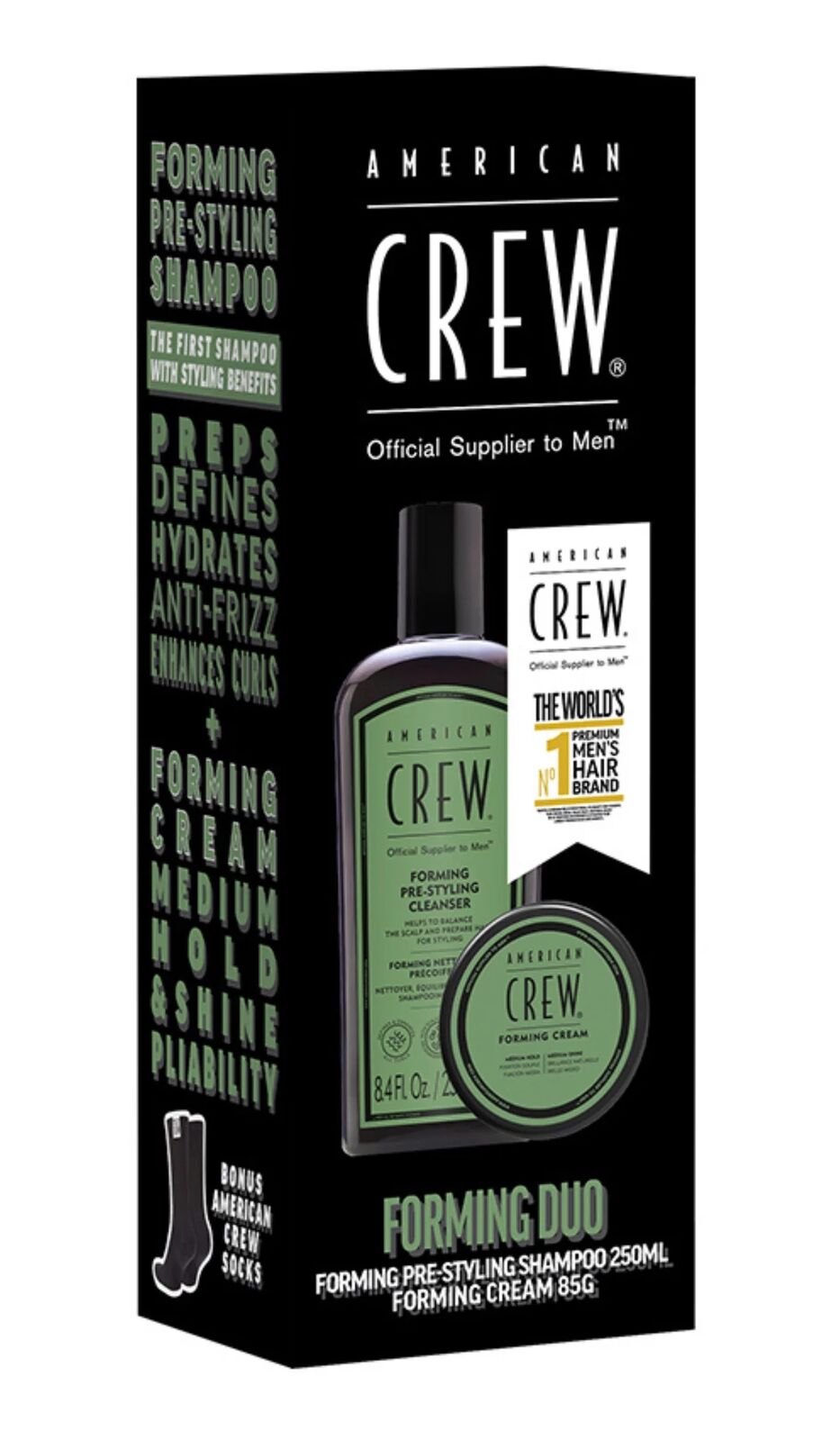 American Crew Forming Cream & Pre-Styling Cleanser Shampoo + Bonus American Crew Socks