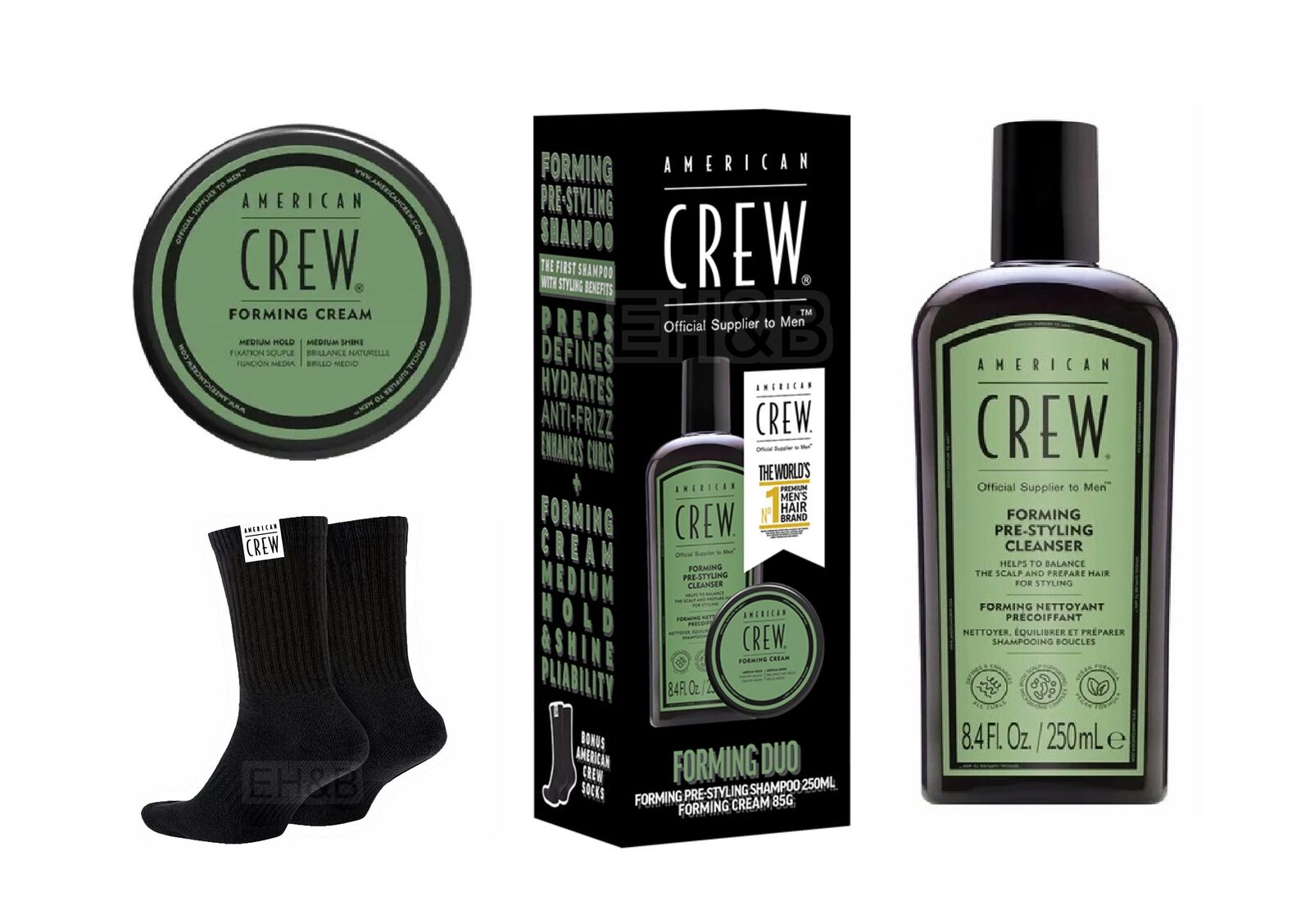 American Crew Forming Cream & Pre-Styling Cleanser Shampoo + Bonus Socks