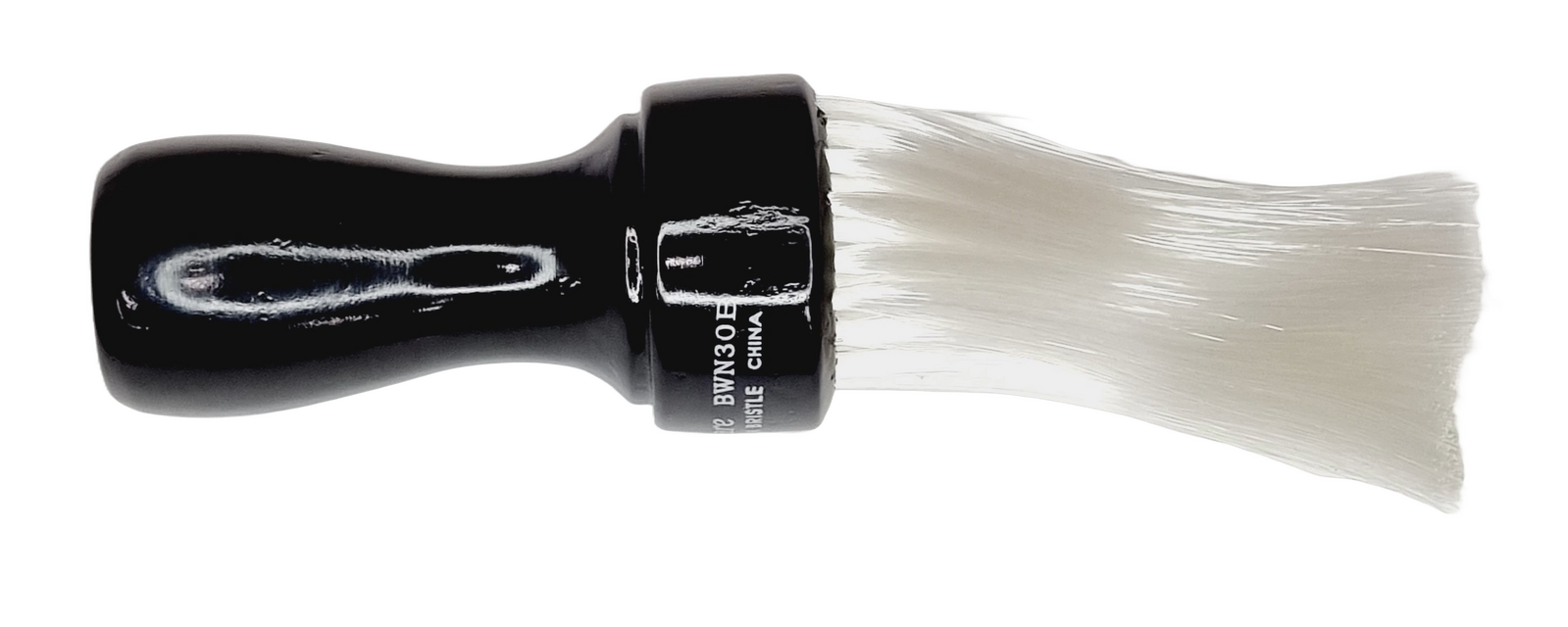 The Aware Professional Round Neck Duster Brush is a salon essential designed for efficient post-cut cleanup. Featuring soft nylon bristles and a smooth black wooden handle, it gently removes loose hair from the neck and shoulders without irritating the skin. With a bristle length of 85mm and total brush length of 175mm, it offers optimal coverage and control. Lightweight and ergonomic, this brush is ideal for barbers, stylists, and grooming professionals seeking comfort and precision.