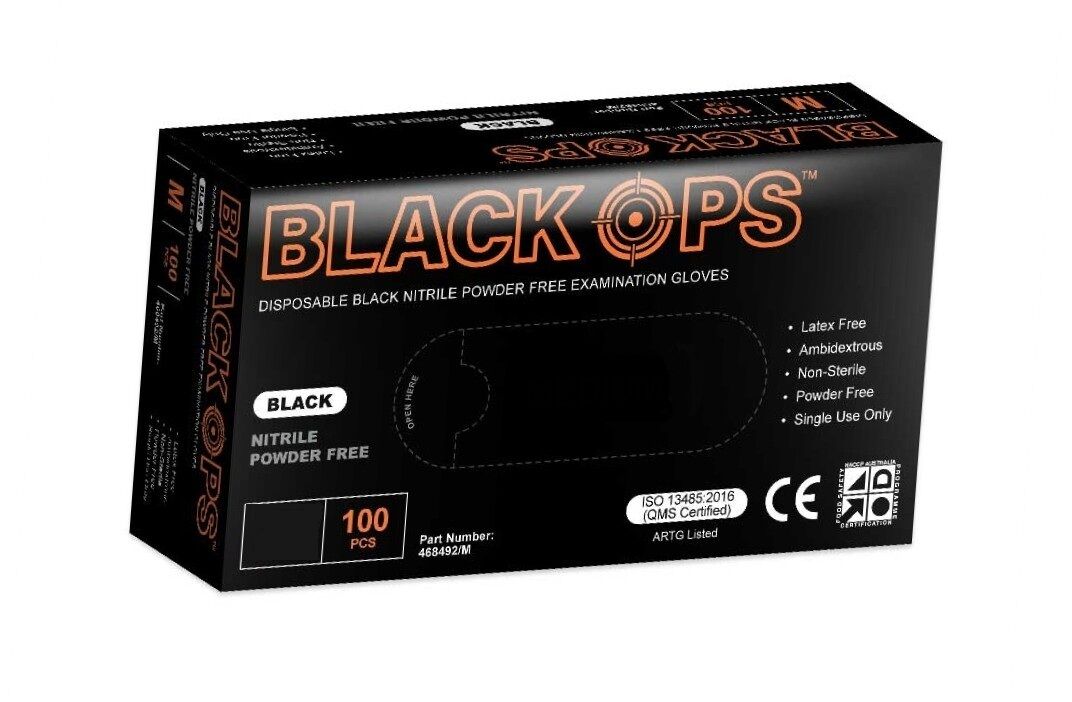 Black Ops Professional Nitrile Black Disposable Gloves Box 100pc
