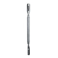 Softening the cuticles is recommended before use. Use the curved end to gently push the cuticles back from the nail plate. Use the sharp, spoon end to scrape away non-living tissue from the nail surface or clean under the nail. Sterilize the stainless steel tool after each use.