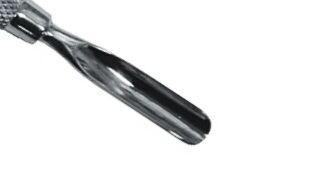 • Spoon-shaped end meticulously scrapes away dead cuticle tissue