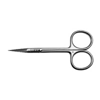 Use the curved blades to follow the natural line of the cuticle or nail for a clean trim. For brow grooming, use small, controlled snips to shape the arch. Clean the scissors after each use with a sanitizing solution or autoclave. Ensure the tool is thoroughly dried before storage to maintain the integrity of the steel.