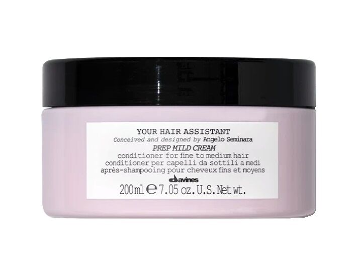 Davines Your Hair Assistant Prep Mild Cream is a pre-styling conditioner designed to hydrate, detangle, and protect hair from heat styling. Ideal for medium to fine hair, it delivers elasticity and softness without weighing strands down. Enriched with vitamin E and nourishing emollients, this lightweight cream leaves hair compact, silky, and ready for blow-drying. Use as the second step in the Your Hair Assistant routine for optimal styling results.