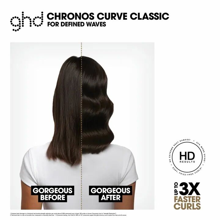 The ghd Chronos Curve Classic Tong is engineered for fast, high-definition curling with up to 50% smoother and shinier results. Its curl-responsive technology uses intelligent sensors to adapt heat and styling speed, ensuring even heat distribution and reduced frizz. The professional-grade anodised barrel offers improved grip and glide, while the cool tip and integrated safety stand provide comfort and control. With a 20-minute sleep mode and universal voltage, it’s perfect for salon or travel use.