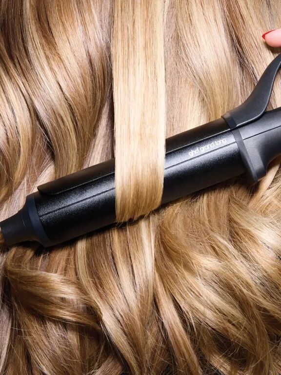 Prep with ghd Curly Ever After. Section hair and wrap 2-inch diagonal sections around the barrel. Hold for 3–5 seconds. Pin curls to cool. Brush out for soft volume or leave defined.