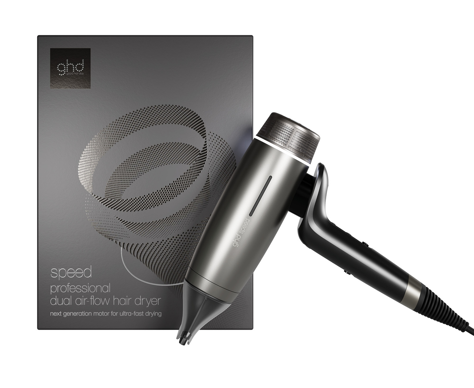 The ghd Speed Professional Hair Dryer is ghd’s fastest and most advanced styling tool to date. Featuring breakthrough ghd halo™ dual-airflow technology, it delivers ultra-fast drying and a 56% increase in shine while maintaining total scalp comfort.