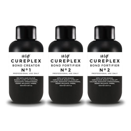 Hi Lift Cureplex Kit 3 is a salon-exclusive, three-step bond-building system engineered in Switzerland and made in Italy. It protects hair during chemical services and maintains strength and shine long after. The No.1 Bond Creator forms new bonds and reinforces existing ones during colouring, bleaching, perming, or straightening. The No.2 Bond Fortifier seals and stabilizes the hair structure post-treatment. The No.3 Bond Sustainer is a take-home treatment that prolongs results and nourishes hair between services. Cureplex does not alter peroxide levels, processing time, or application methods, making it easy to integrate into any salon workflow.