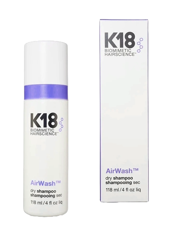 K18 AirWash™ is a revolutionary non-aerosol dry shampoo that reinvented the category by using biotechnology to actually clean hair without the white cast, starchy buildup, or "gritty" feel. This 118ml high-performance spray eliminates odor and oil while leaving hair feeling freshly washed and soft.