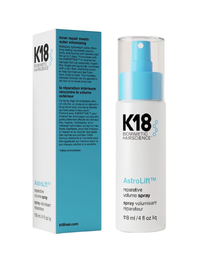The [K18 AstroLift Reparative Volume Spray](http://googleusercontent.com/shopping_content/12_link) is a revolutionary, lightweight styling treatment powered by patented K18PEPTIDE™ technology. Designed to reverse damage that leads to limp, flat hair, it provides a 2.5x volume boost that lasts up to 48 hours.