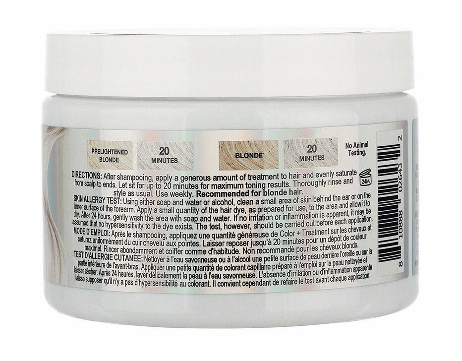 Infused with Keracolor’s signature Keratin-based formula, the Color+ Treatment works to strengthen the hair shaft while delivering a crisp Platinum pigment. This shade is specifically engineered to neutralize unwanted yellow and brassy tones in blonde, silver, and grey hair, providing a clean, cool finish without the need for harsh chemical toners. Unlike traditional purple shampoos that can be drying, this conditioning masque is non-lathering and sulfate-free, ensuring your hair's natural oils are preserved. Formulated with a nourishing blend of Jojoba, Rosehip, and Almond oils, it provides intense hydration and a brilliant, glossy shine that makes blonde hair pop. The semi-permanent pigment builds with every wash, allowing you to maintain that perfect "just-out-of-the-salon" icy look. Because it is a "Clenditioner," it replaces your shampoo and conditioner, simplifying your toning routine into a single step. It is PETA-certified cruelty-free and free from ammonia and parabens, making it a safe choice for even the most delicate pre-lightened hair. Achieve the perfect icy blonde with luxuriously soft results every time you wash.