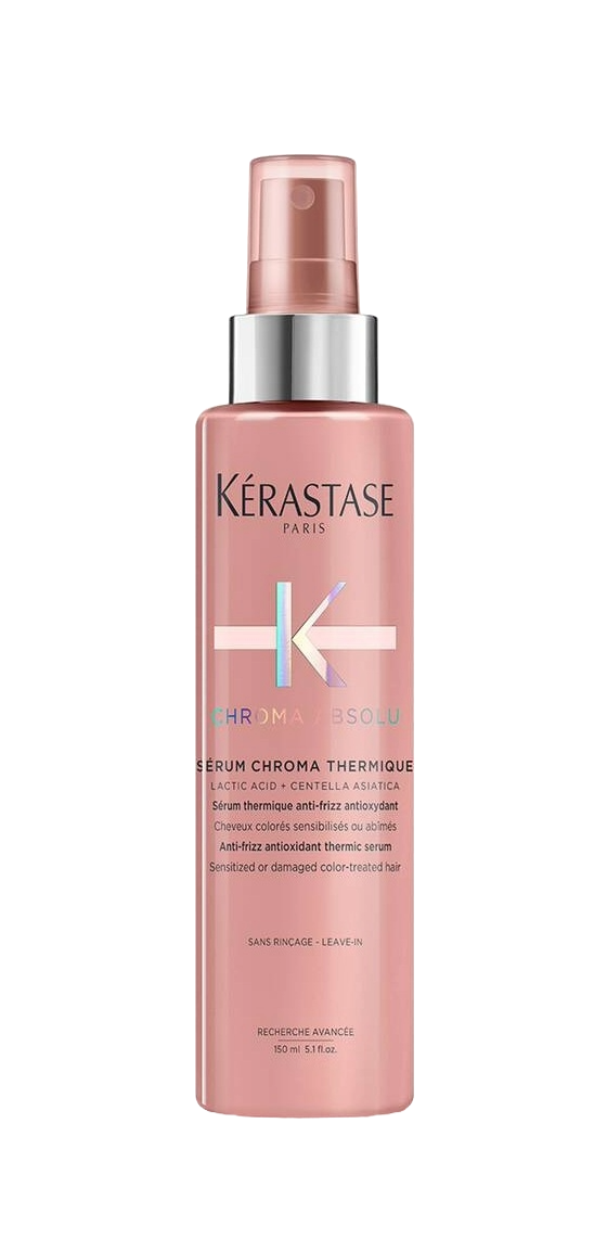 The Kérastase Chroma Absolu Sérum Chroma Thermique is a professional-grade, universal anti-frizz antioxidant thermic leave-in serum for all sensitized or damaged color-treated hair. This 150ml styling treatment is the essential prerequisite for protecting your color vibrancy while defending hair against environmental and styling damage.