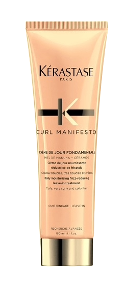 The Kerastase Curl Manifesto Crème De Jour Fondamentale is a lightweight, ultra-hydrating daily leave-in cream specifically formulated for all curly and coily hair types. It is the essential final step in your wash-day routine or a perfect daily refresher to achieve defined, healthy, and soft curls.
