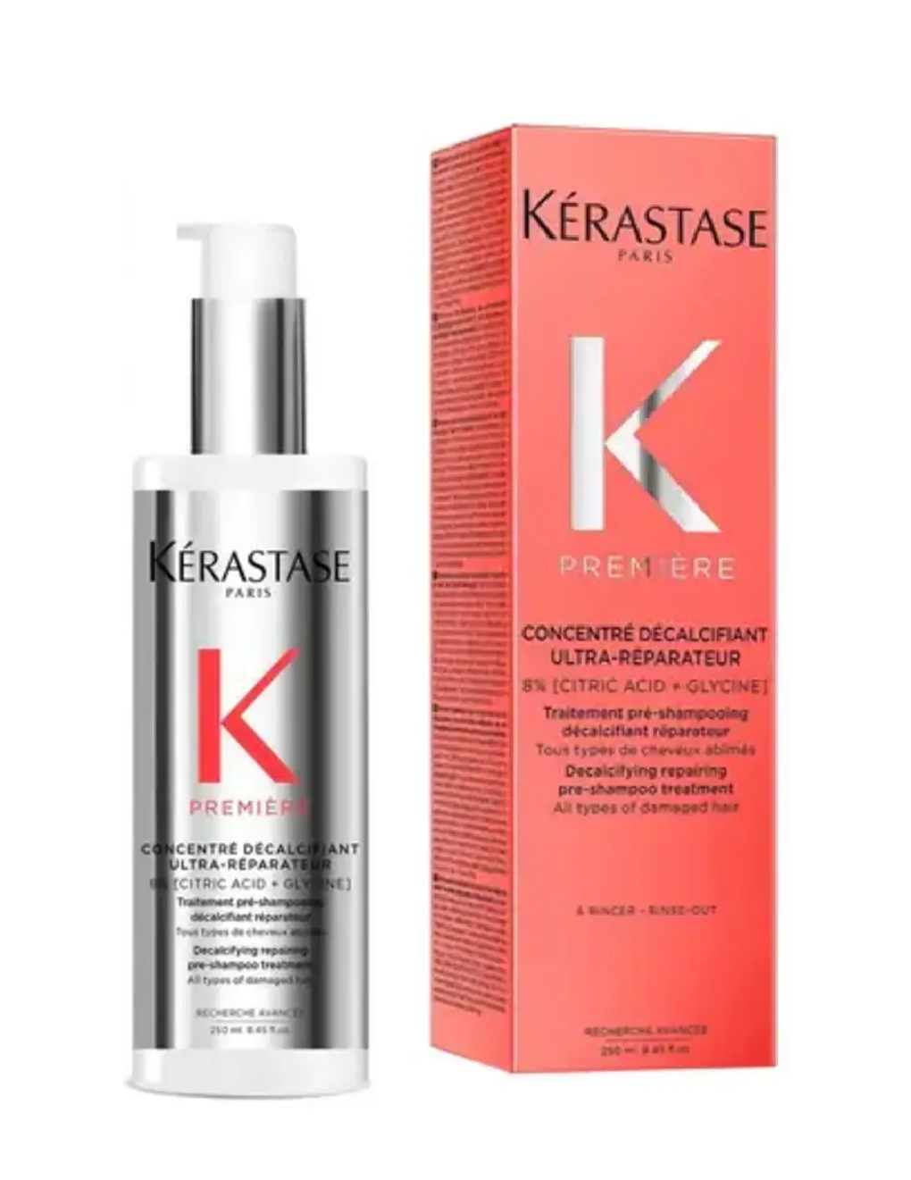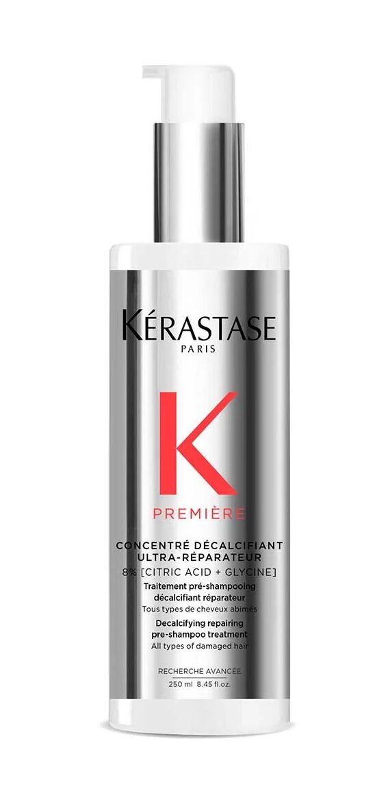 The Kérastase Première Concentré Décalcifiant Ultra-Réparateur is a professional-grade, decalcifying repairing pre-shampoo treatment designed for all types of over-processed or damaged hair. This 250ml intensive formula is the ultimate prerequisite for reversing persistent damage caused by calcium buildup from hard water.
