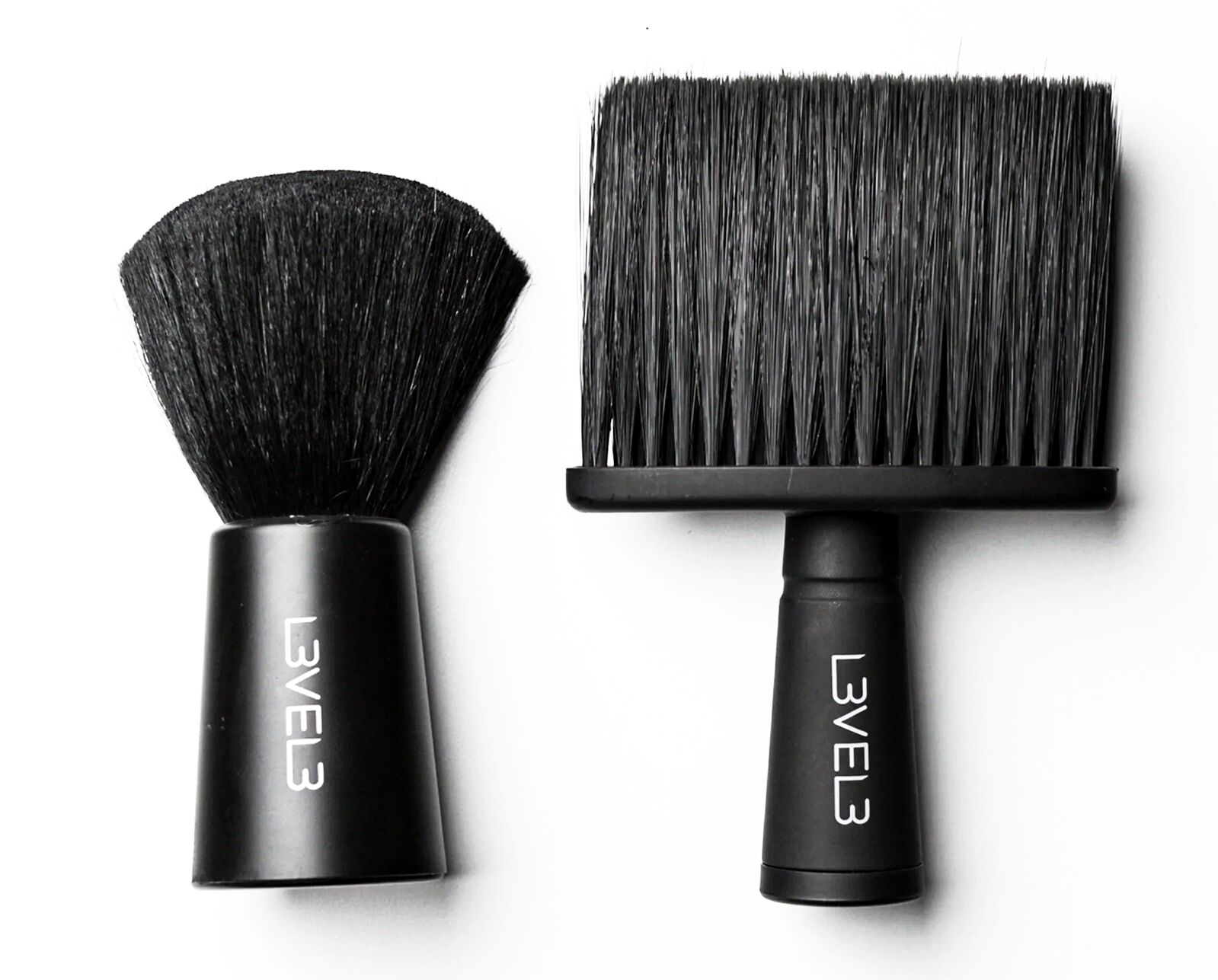 The L3VEL3 Neck Duster Brush Set is a professional duo designed to provide the ultimate finishing touch to every haircut. This set features high-quality, soft nylon bristles that effortlessly remove loose hair from the neck, face, and ears without irritating the skin.