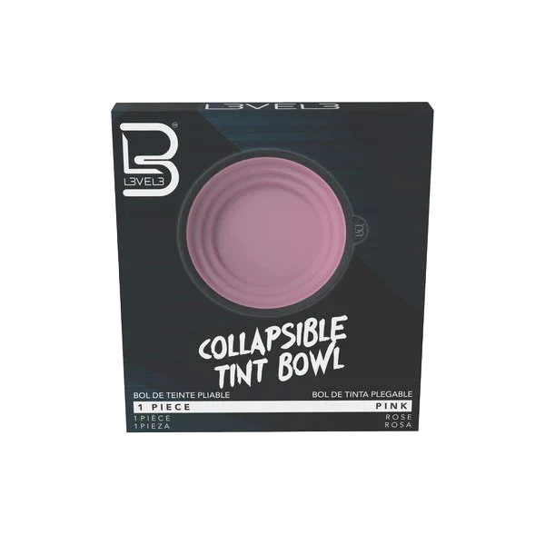 The L3VEL3 Collapsible Tint Bowl in Pink combines eye-catching aesthetics with professional-grade functionality. Made from high-quality, food-grade silicone, this bowl is 100% metal-free, ensuring that no chemical reactions occur to compromise your hair dye or lightener results. Its intelligent collapsible design allows it to expand into a full-sized mixing bowl and fold down completely flat for storage, making it the ultimate choice for mobile stylists or salons with limited counter space. The stain-resistant silicone surface is specifically engineered to withstand harsh salon chemicals, including high-volume developers and bleach, without degrading or absorbing pigments. To ensure a mess-free environment, the bowl features a non-slip base that grips firmly to workstations, providing stability during vigorous mixing. Its 5-inch diameter provides ample room for creating custom color blends, while the flexible material allows for easy handling. Durable, lightweight, and easy to clean, this reusable bowl is a stylish and practical essential for any professional kit. Experience the perfect blend of portability and performance with L3VEL3.