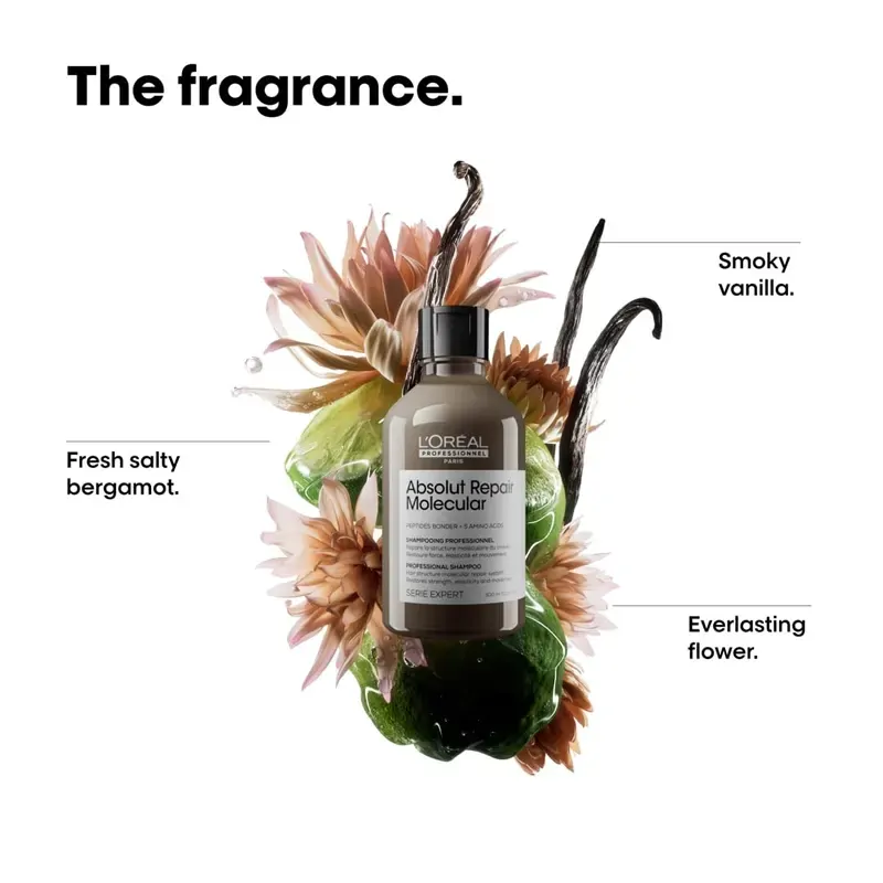 Experience breakthrough molecular repair with L'Oréal Serie Expert Absolut Repair Molecular Shampoo. This sulfate-free formula is designed for severely damaged hair, including colour-treated, lightened, and natural textures. Powered by Peptides bonder and 5 essential amino acids, it penetrates deep into the fibre to reconstruct the hair’s molecular structure. The creamy texture transforms into a rich foam, gently cleansing while restoring strength, elasticity, and movement. Hair is visibly smoother, softer, and more resilient—even after just one use.