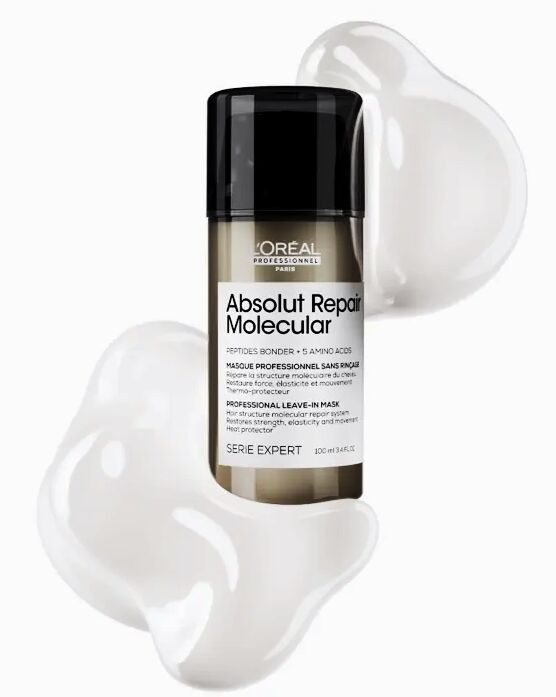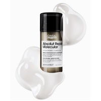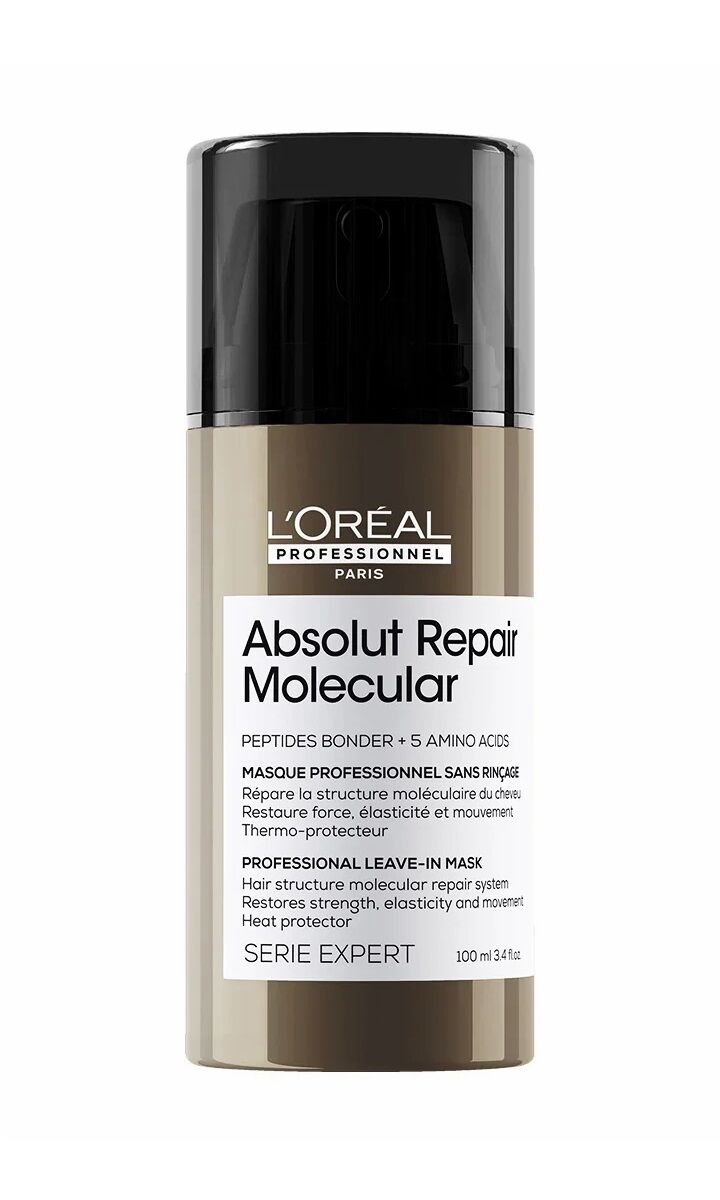 Repair two years of damage in one use with L'Oréal Serie Expert Absolut Repair Molecular Leave-In Mask. This patented formula is powered by 2% peptides bonder and 5 essential amino acids that penetrate deep into the hair fibre to rebuild its macro-molecular structure. The lightweight cream instantly strengthens, smooths, and protects hair while restoring elasticity and movement. Ideal for severely damaged, bleached, or chemically treated hair, it also provides heat protection up to 230°C.