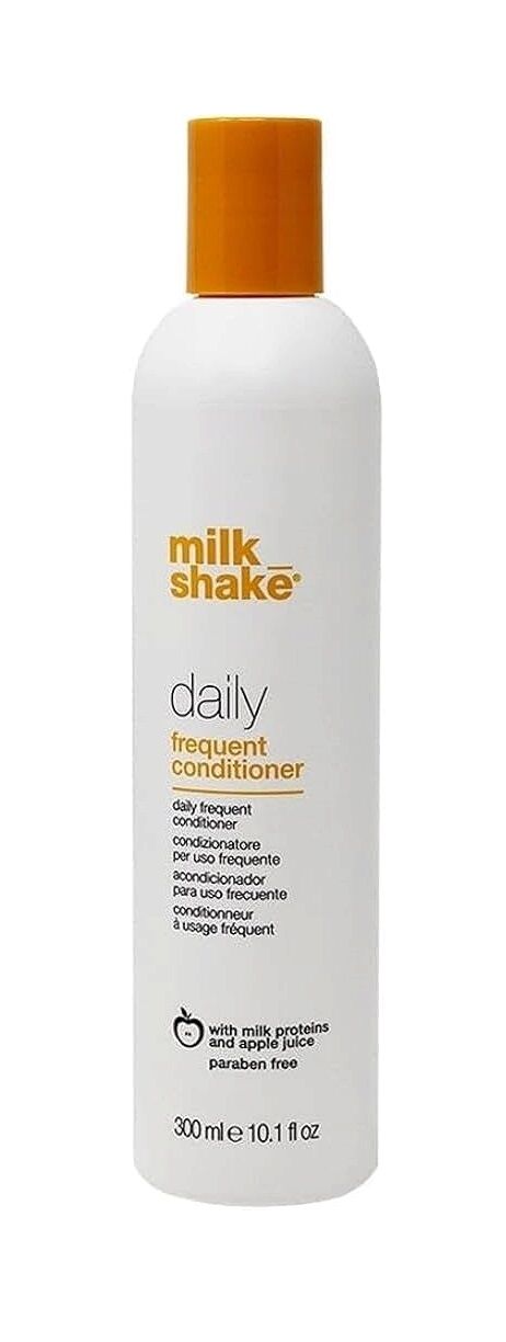 milk_shake Daily Frequent Conditioner is a lightweight, paraben-free formula designed for normal or dry hair that requires frequent washing. Enriched with milk proteins, apple juice extract, and Integrity 41® (sunflower seed antioxidant), it hydrates, detangles, and protects without weighing hair down. This gentle conditioner enhances softness, shine, and manageability while helping preserve colour vibrancy. Ideal for everyday use, it leaves hair fresh, radiant, and delicately scented.