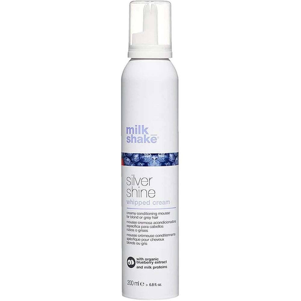 milk_shake Silver Shine Whipped Cream is a luxurious leave-in conditioning foam designed to neutralise unwanted yellow or brassy tones in blonde, grey, white, or lightened hair. Enriched with violet pigments, organic berry extracts, milk proteins, and Integrity 41® (sunflower seed antioxidant), it hydrates, detangles, and enhances colour vibrancy while maintaining moisture balance. This creamy mousse leaves hair soft, shiny, and manageable with a fresh, fruity scent. Ideal for daily use between salon visits to maintain a cool, luminous tone.