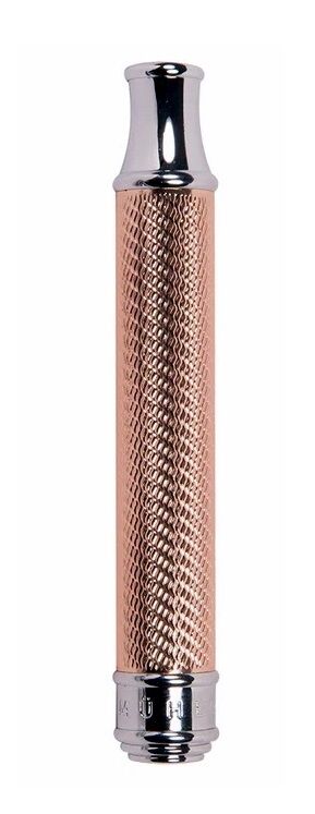 The Muhle R89 Rose Gold Safety Razor is a timeless grooming tool designed for a smooth, gentle shave with refined control. Featuring a closed comb head and three-piece construction, it offers a forgiving shave ideal for daily use and sensitive skin. The rose gold-plated metal handle is corrosion-resistant and finished with chrome highlights for added durability and elegance. Balanced weight and knurled grip ensure precision and comfort. Made in Germany, this razor blends classic craftsmanship with modern luxury.