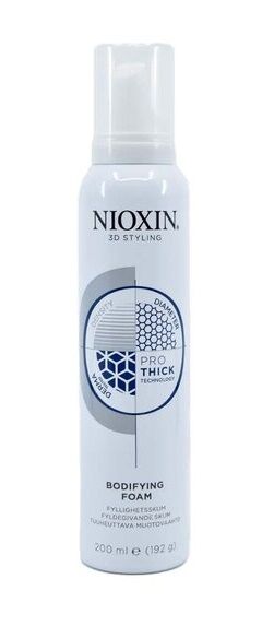 Nioxin 3D Styling Bodifying Foam 200ml is a lightweight volumizing mousse designed to deliver fuller, thicker-looking hair instantly. Powered by ProThick Technology—a complex of thickening polymers—it wraps each strand to create space and density, giving hair a lifted, bodified appearance. Ideal for thinning or fine hair, it provides manageable hold, controls static, and enhances styling flexibility without stiffness or residue. The formula includes Panthenol and Mentha Arvensis Leaf Oil to nourish the scalp and improve hair resilience.