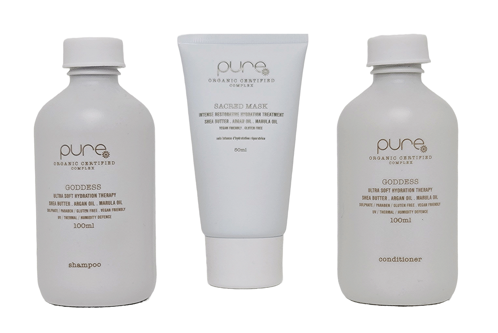Pure Travel Pack - Goddess Shampoo & Conditioner 100ml + Sacred Mask Treatment 50ml