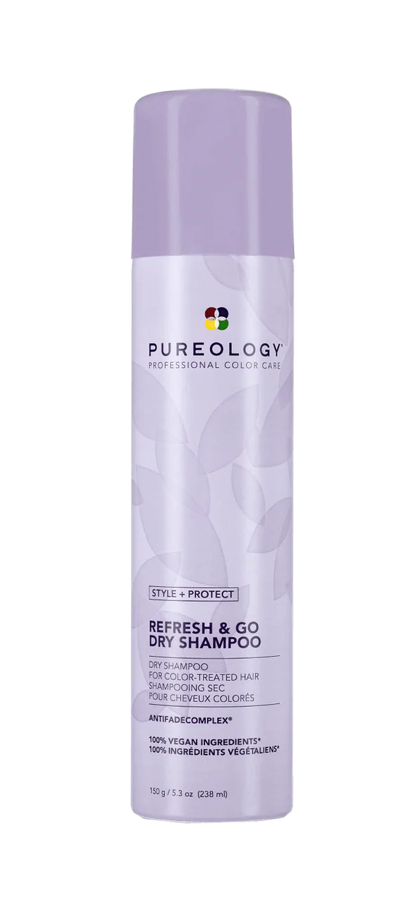 Powered by Rice Starch, this dry shampoo effectively soaks up excess sebum while adding effortless movement and a soft, touchable texture. Unlike traditional dry shampoos that can leave hair feeling stiff or chalky, Refresh & Go is engineered to keep hair manageable and airy. It features Pureology’s patented Antifade Complex®, which utilizes Sunflower Seed extract and UV filters to protect color vibrancy against environmental damage and heat styling.