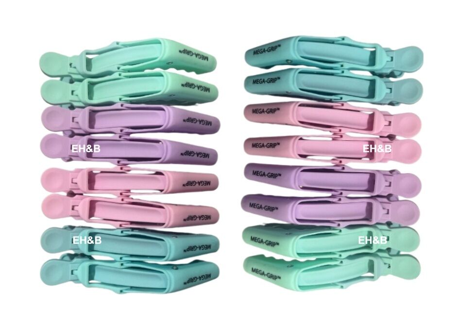 Engineered with a unique double-hinged design, these crocodile clips are specifically built to hold any amount of hair, regardless of thickness or texture. The articulated joint allows the clip to automatically adjust its grip based on the volume of hair, ensuring a non-slip hold that won't pull or snag. The Mega Grip teeth along the base provide extra security, preventing the clips from sliding even on fine or silky hair types.