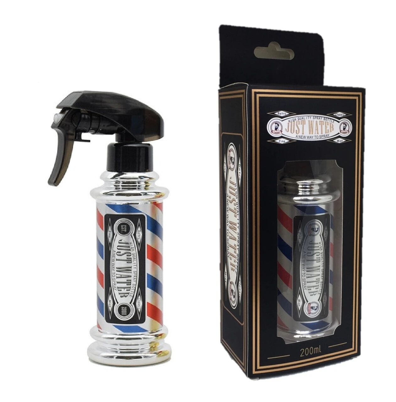 The Silver Barber Pole Water Spray Bottle is a classic salon essential that combines iconic traditional barbering aesthetics with modern functionality. This 200ml bottle is the ultimate prerequisite for barbers and stylists who want to add a touch of vintage flair to their workstation while maintaining professional performance.