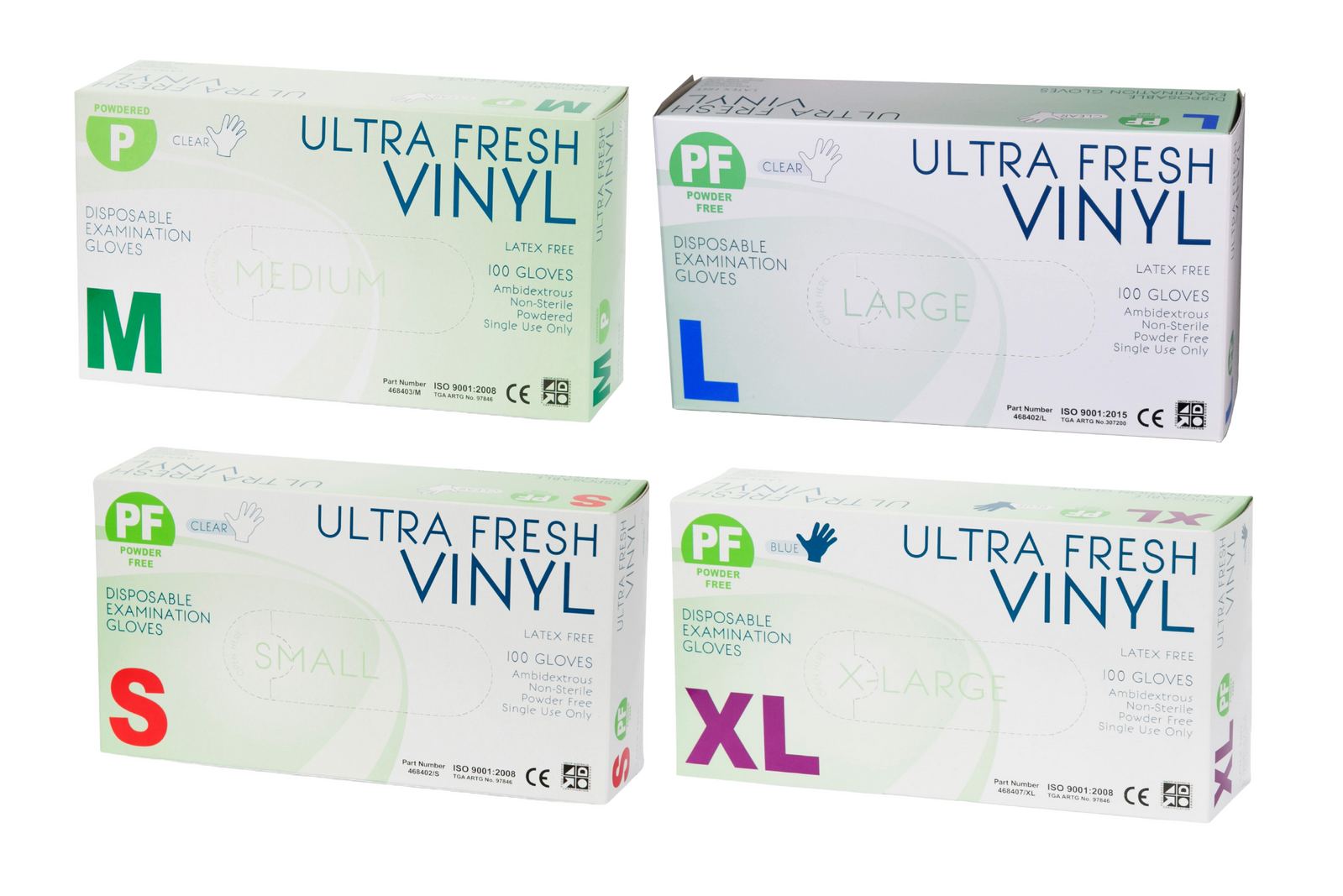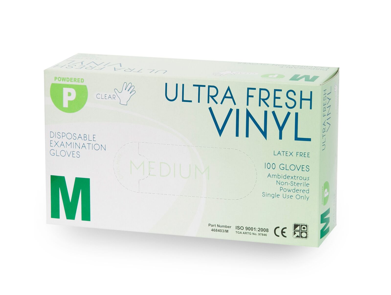 Ultra Fresh Clear Vinyl Powder & Latex Free Disposable Gloves Box 100pc