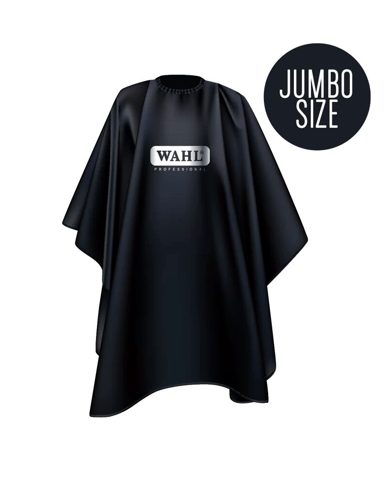 Crafted from high-quality 100% polyester, this Wahl cutting cape features a water-resistant and hair-repellent surface, allowing hair clippings to slide off effortlessly rather than clinging to the fabric. The "Jumbo" dimensions are specifically engineered to provide full-body coverage, ensuring that even taller clients are fully protected from stray hairs and styling products. Designed for the high-traffic barber shop and salon environment, the fabric is both lightweight and breathable, preventing the client from becoming overheated during long services. The cape is equipped with a durable, adjustable hook-and-loop (velcro) or snap neck closure, providing a secure and comfortable fit for all neck sizes. The classic professional black finish provides a sleek look that hides stains and maintains a clean aesthetic. As a genuine Wahl Professional product, this cape is built to withstand repeated industrial laundering while maintaining its shape and protective properties. Whether you are performing a precision fade or a standard trim, the Wahl Jumbo Cape offers the reliability and professional appearance required by top-tier barbers and stylists worldwide.