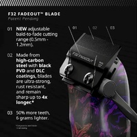 • F32 FADEOUT™ Adjustable Balding Blade for an ultra-close cut and zero-gap ready.